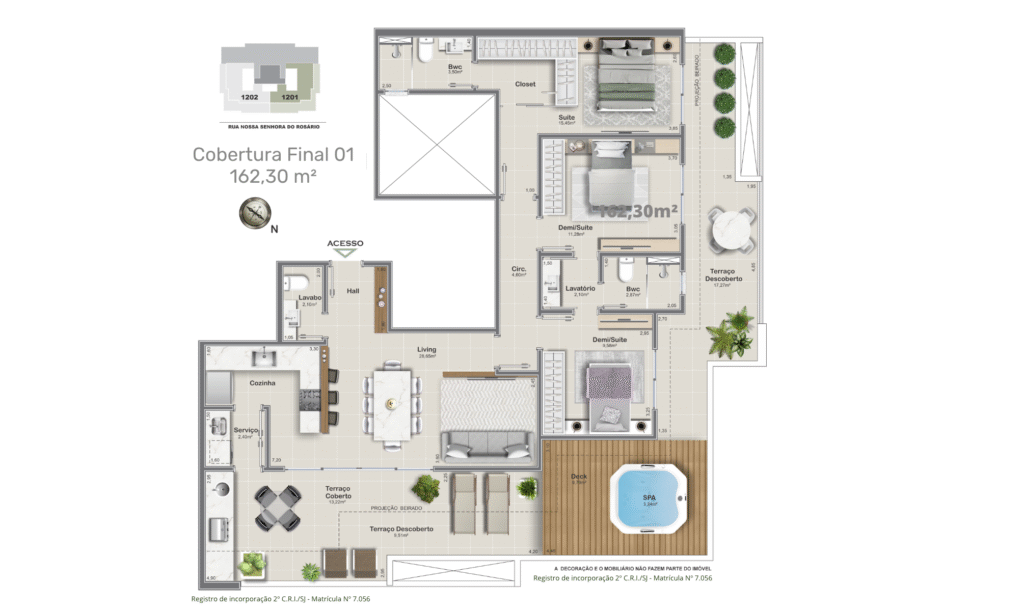 • Unidades com 2 e 3 dormitórios com suíte, de 69 a 163m², com 1 ou 2 vagas de garagem